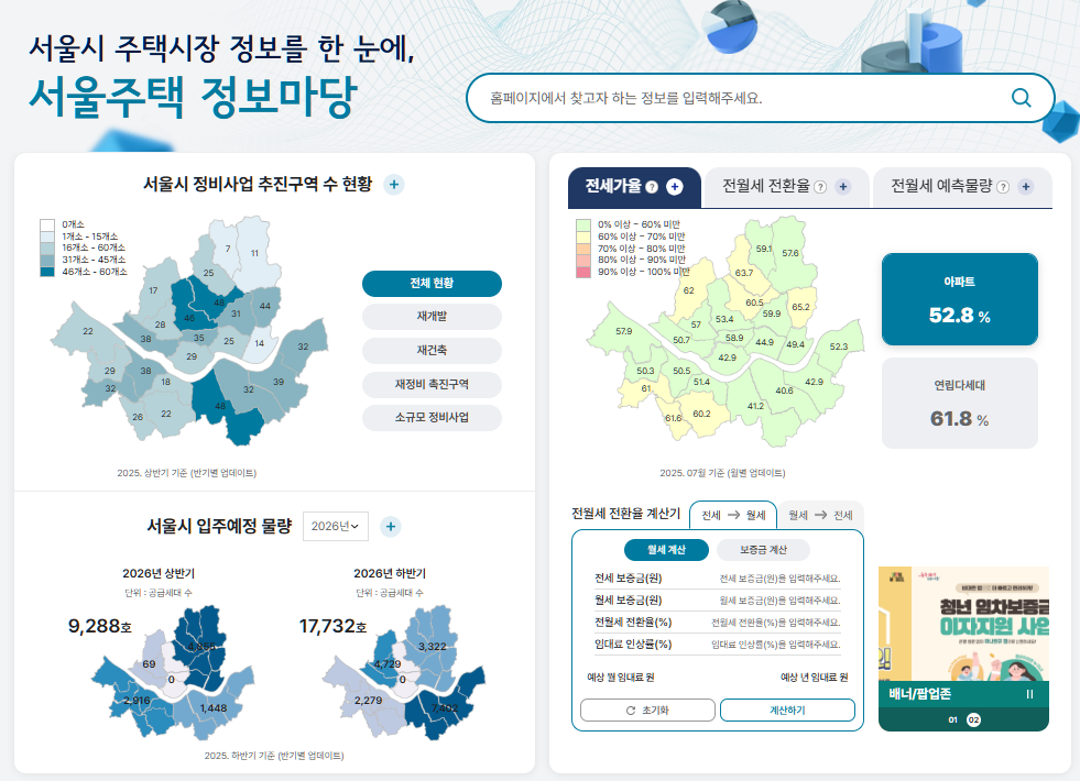 서울주택 정보마당은 서울시가 제공하는 통합 주택시장 정보 플랫폼으로, 기존 '서울주거포털'에서 제공되던 정보보다 훨씬 확장되었습니다.