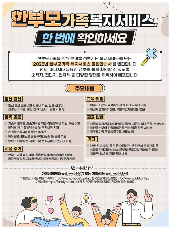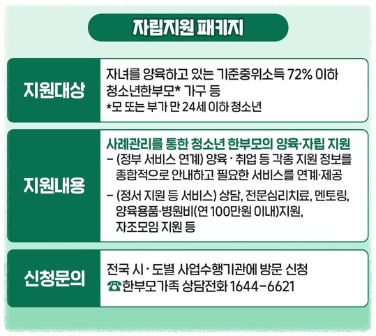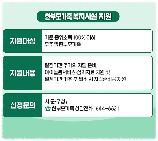 한부모가정 지원은 법적 한부모가정으로 인정된 경우에 신청할 수 있으며, 소득 기준에 따라 지원 내용이 달라집니다.